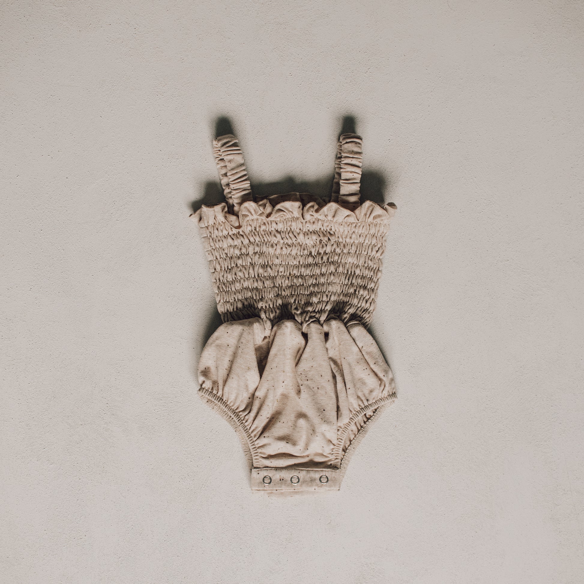 Light, airy, and perfect for warm days. Our Sleeveless Cotton Flecked Summer Romper is crafted from soft, breathable cotton with subtle flecked detailing for a natural, timeless look. Designed with comfort and play in mind — an easy, everyday piece for your little one’s summer wardrobe.