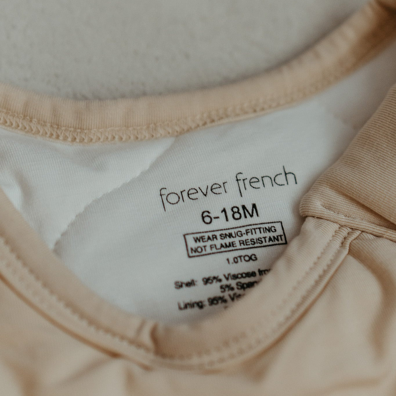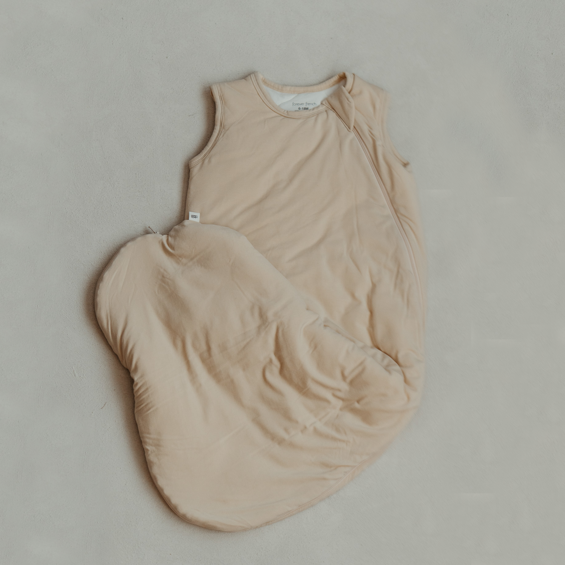 Lightweight and breathable, this cream bamboo sleep sack offers comfort and warmth without overheating. A 1.0 tog design makes it perfect for year-round use.