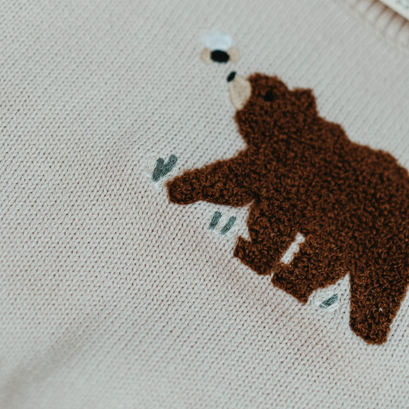 Designed for comfort and everyday wear, this baby knit jumper is made from soft, breathable fabric that keeps little ones cozy without feeling heavy. The simple bear embroidery on the front adds just the right amount of playfulness to a timeless piece you’ll reach for again and again.