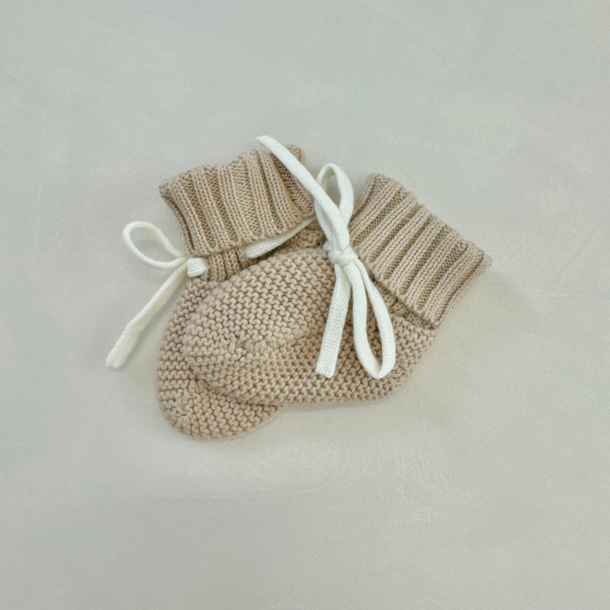 Keep little feet warm and cosy with the Beige Booties, a timeless essential for newborns and toddlers. Designed for comfort and practicality, these soft cotton booties are perfect for everyday wear and make a beautiful addition to any baby knitwear collection.