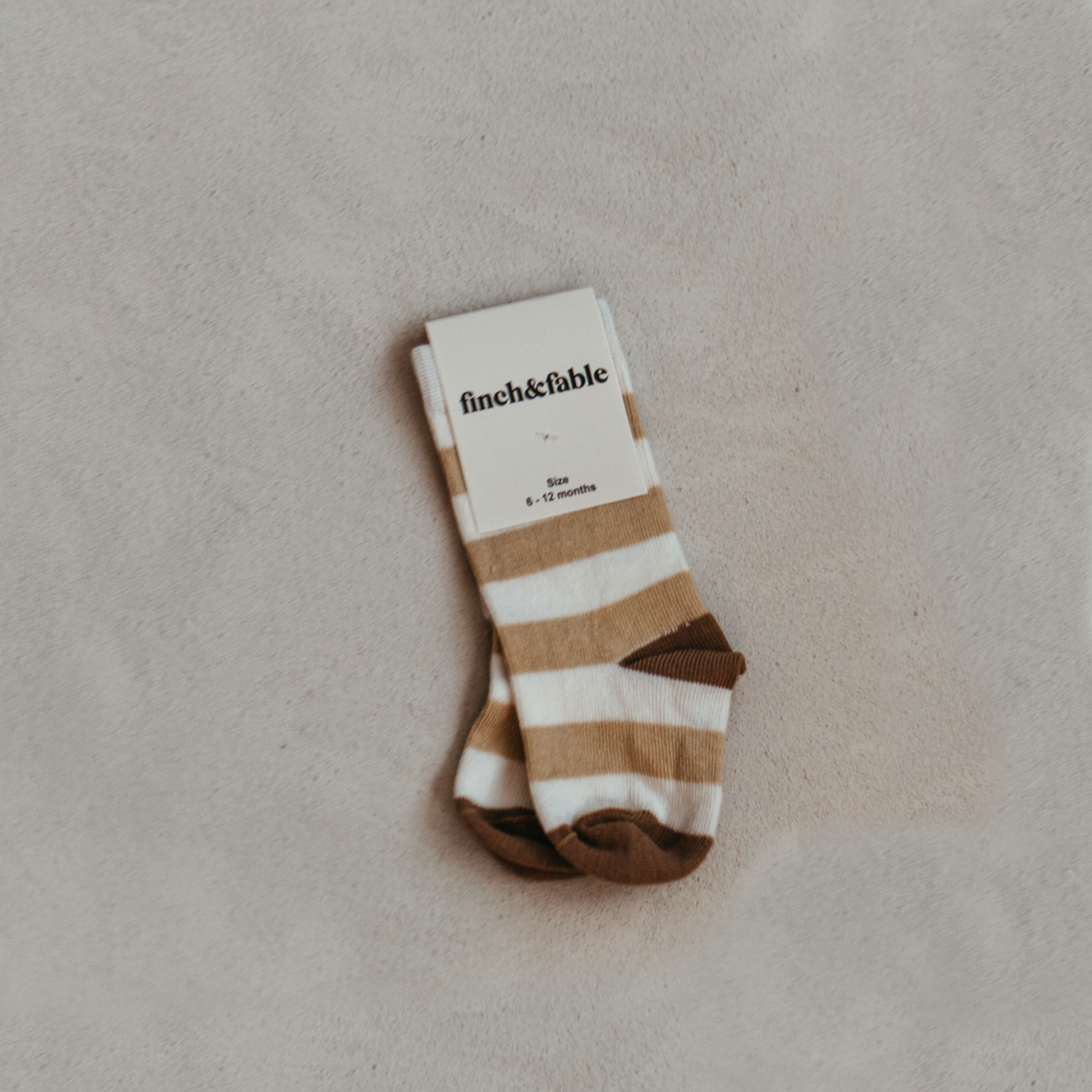 Keep little feet cozy with these brown stripe socks — soft, stretchy, and easy to wear all day.