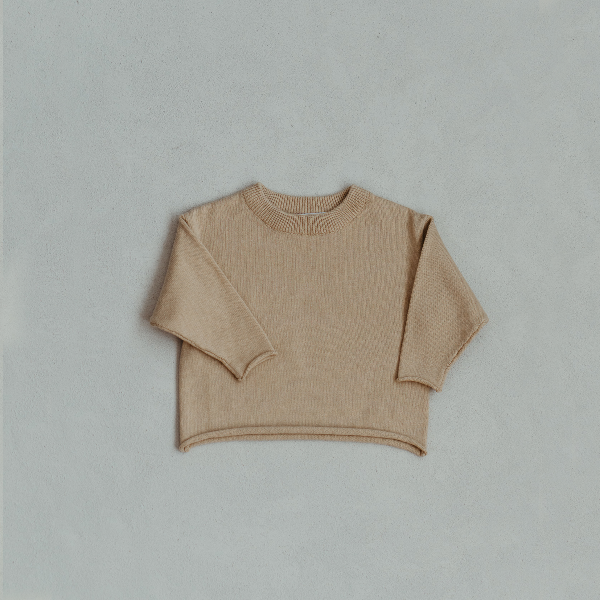 Warm and simple, this clay knit sweater is perfect for cooler days. Soft against delicate skin and easy to pair with any outfit.