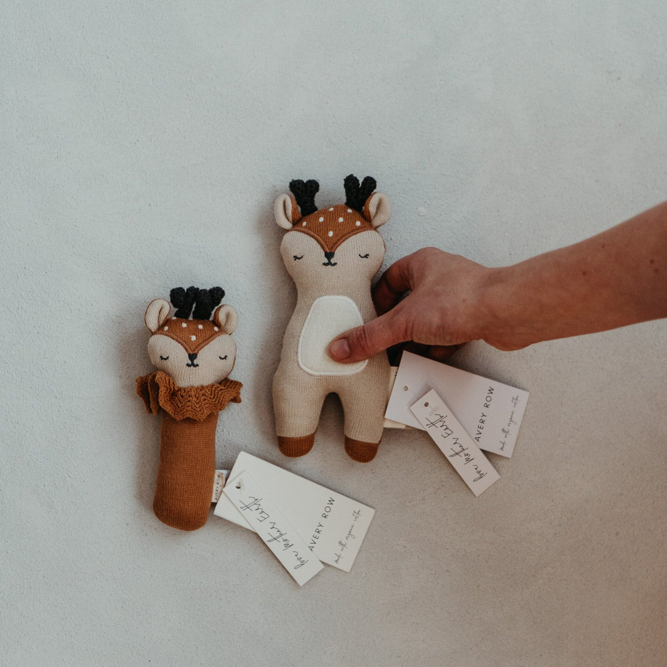 Charming and cuddly, this soft knitted deer makes a timeless companion for little ones. Gentle and lightweight, it’s easy to carry along for comfort and play.