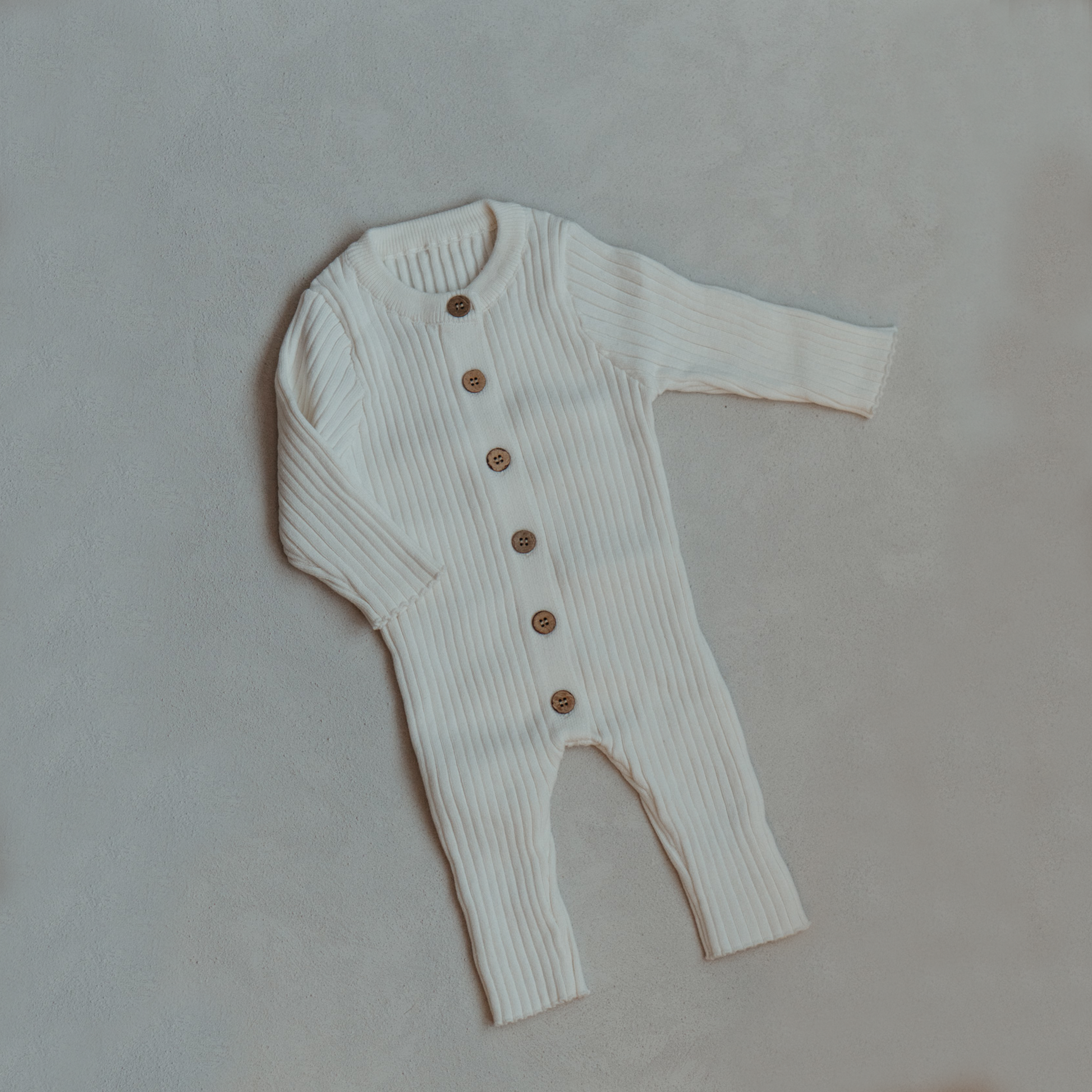 Simple, soft, and timeless. This ribbed cream romper features a full button-down front for easy dressing and a snug, comfy fit perfect for everyday wear. A versatile staple for your baby’s wardrobe.