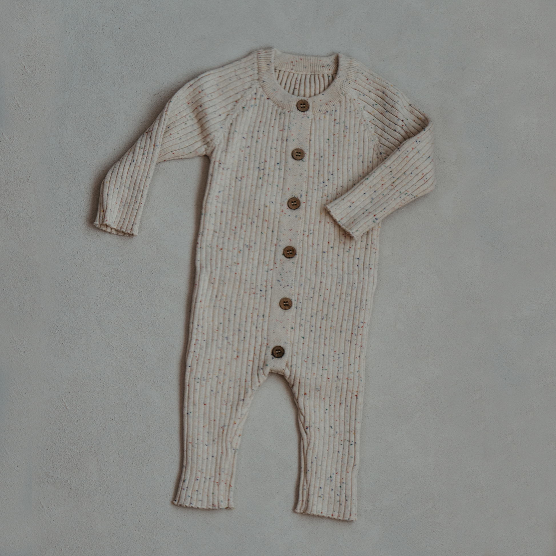 Simple, soft, and timeless. This ribbed romper features a full button-down front for easy dressing and a snug, comfy fit perfect for everyday wear. A versatile staple for your baby’s wardrobe.
