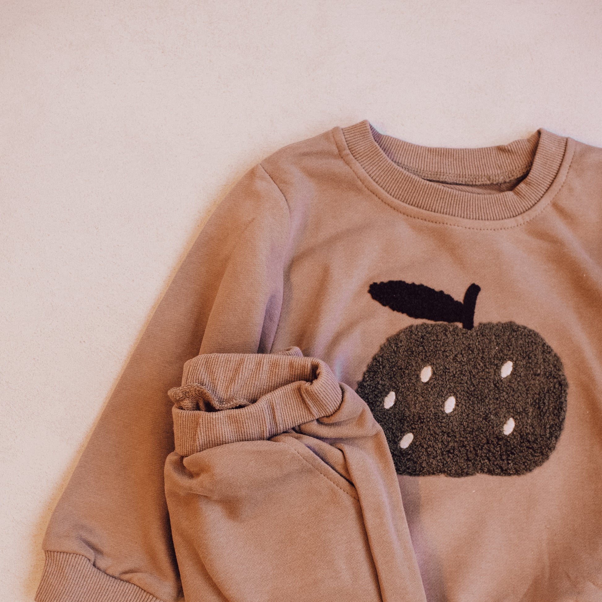 Super soft fruit print lounge sets featuring a cosy jumper and joggers, made from high-quality fabric for everyday comfort.