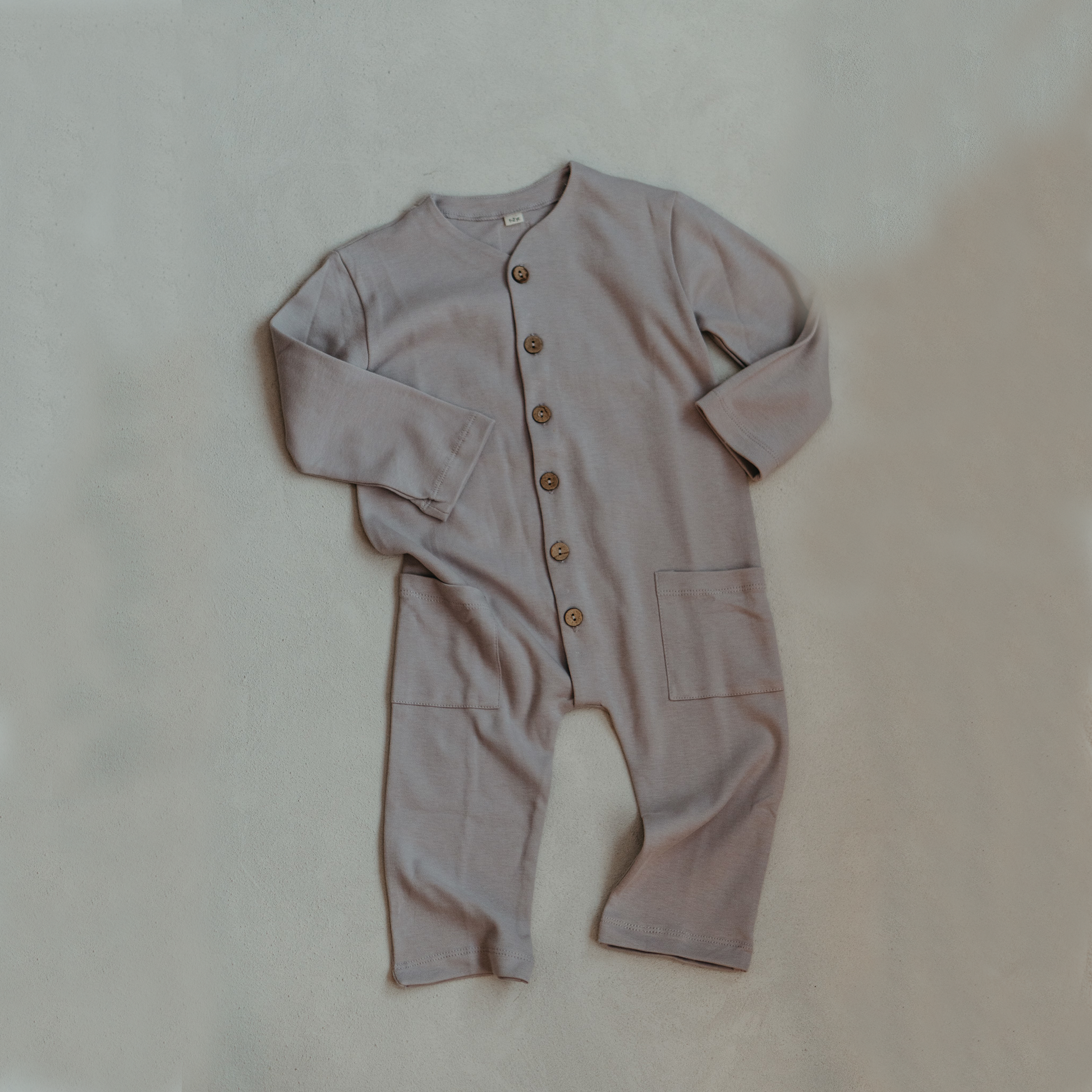 Soft, stretchy, and easy to wear, this river grey interlock jumpsuit is perfect for little ones on the move. A simple staple for everyday adventures.