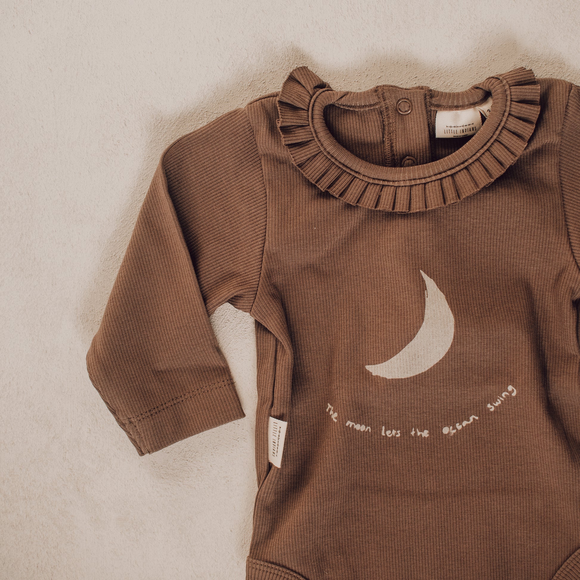This newborn wrap bodysuit with short sleeves in caribou with a moon print by Little Indians is made from soft, organic cotton — a true must-have for your newborn baby. Produced sustainably in Turkey and designed for everyday comfort.