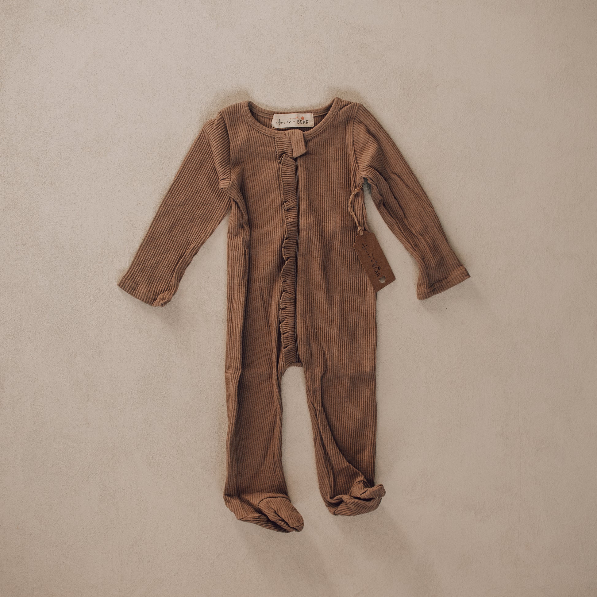 Ruffle Footed Onesie - Cappuccino