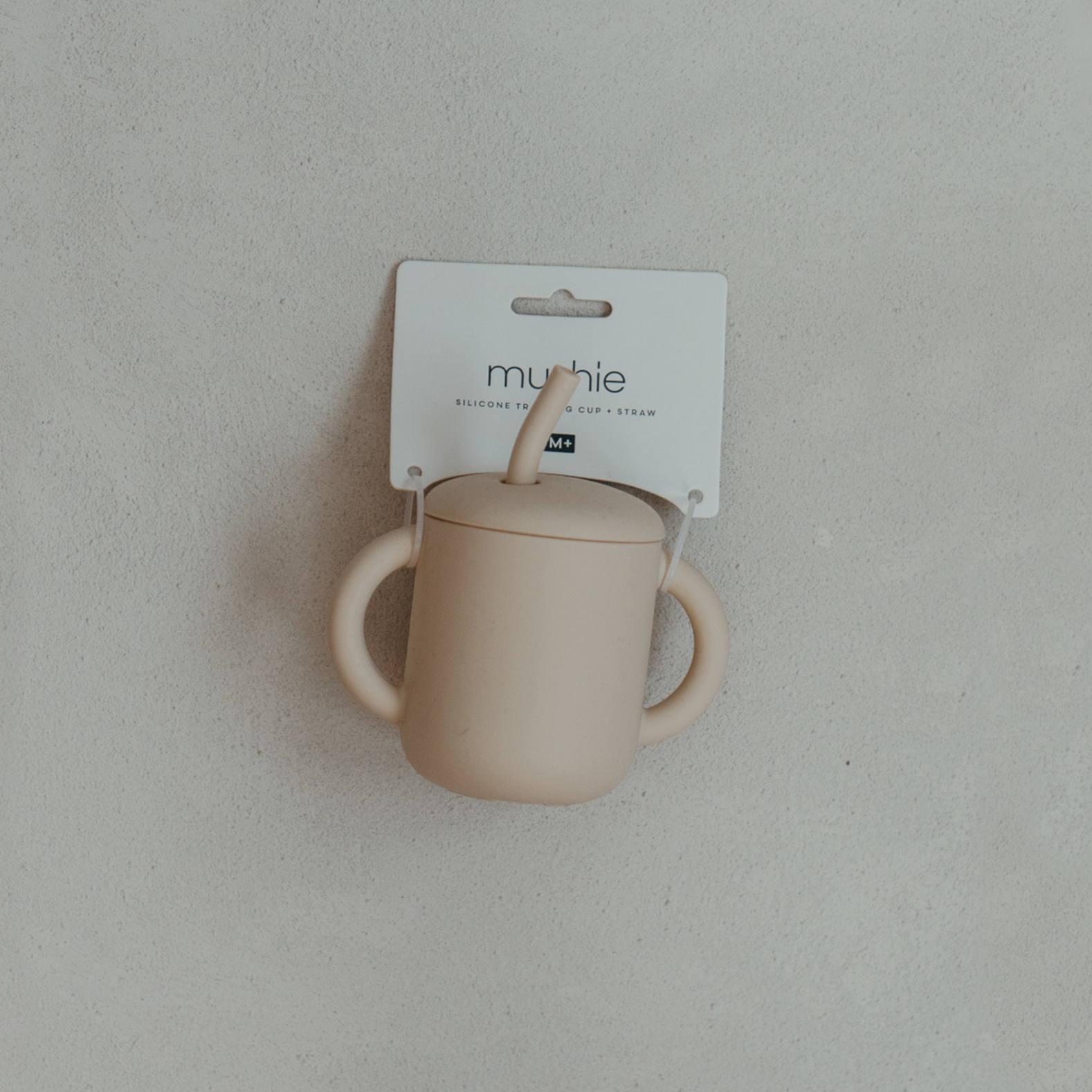 Made for little learners, this cream silicone training cup comes with a straw to make practicing easy. Soft, durable, and dishwasher safe, it’s perfect for everyday use.