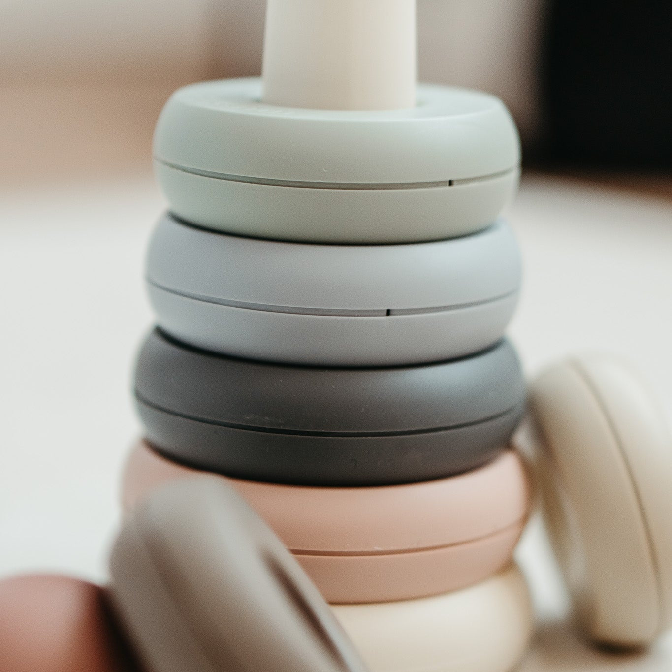Encouraging play and development, these rubber stacking rings in soft pastel shades are lightweight, safe for teething, and perfect for building coordination. A timeless toy for every playroom.