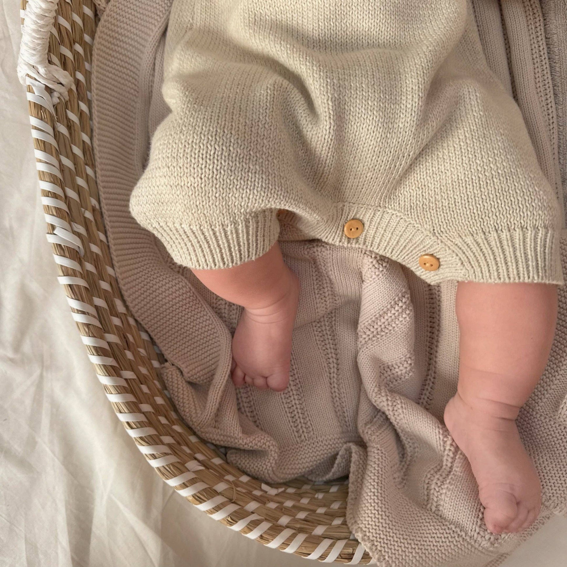 Wheat River Romper - 100% Cotton - small wooden buttons to crotch for easy nappy changing - True to size however if in between sizes we always recommend to size up