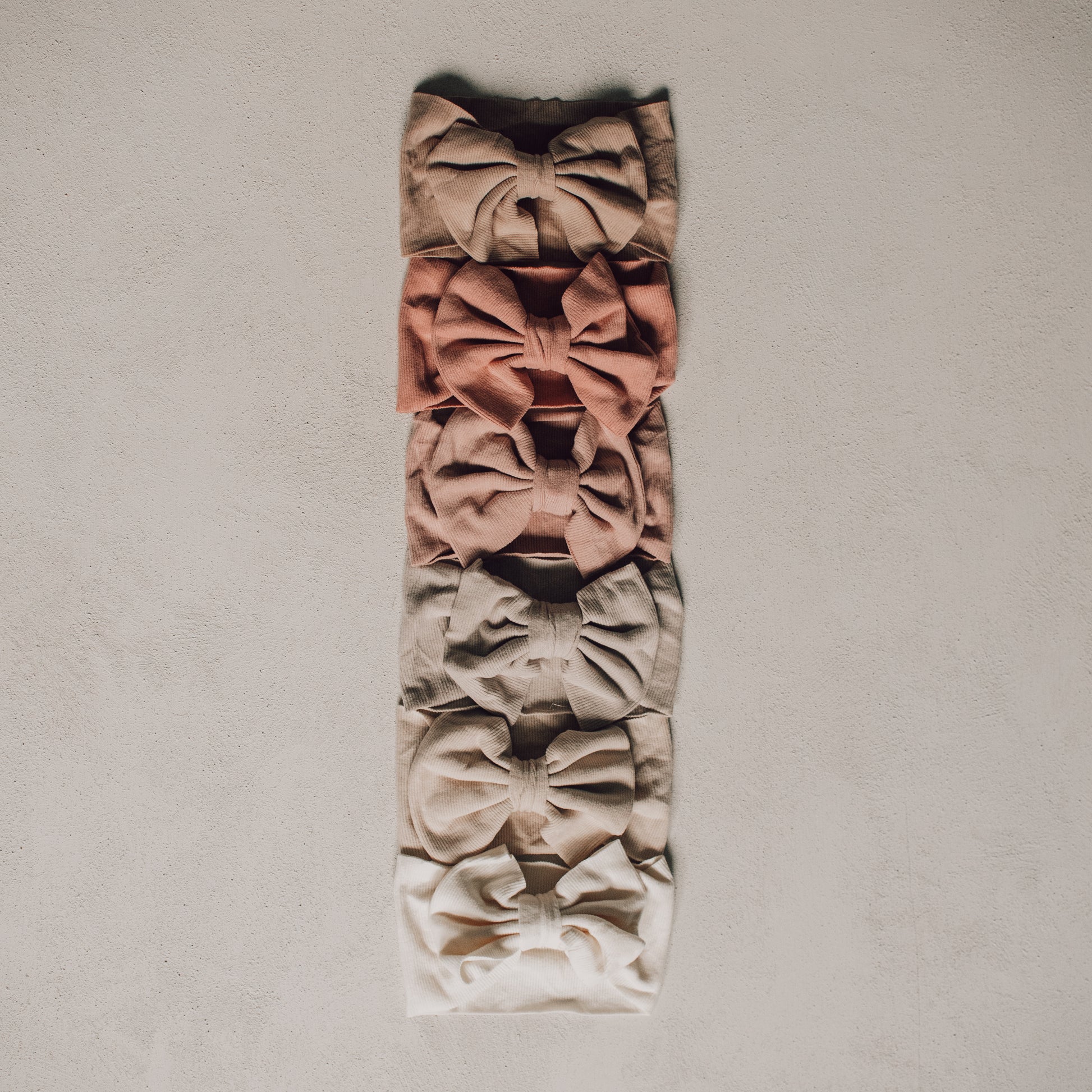 Super soft ribbed stretchy bow headbands, Newborn to 7yrs approx fit.