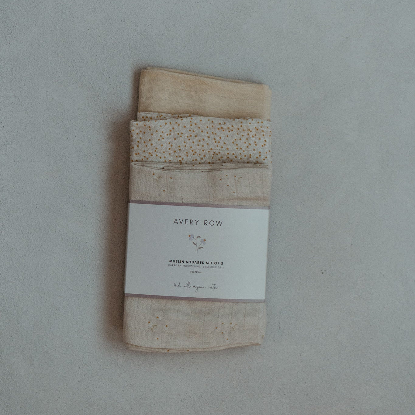 Soft, breathable, and endlessly useful, this set of three muslin squares in a wild chamomile print is perfect for feeding, burping, or everyday use. Lightweight and gentle on delicate skin. 70 x 70cm each