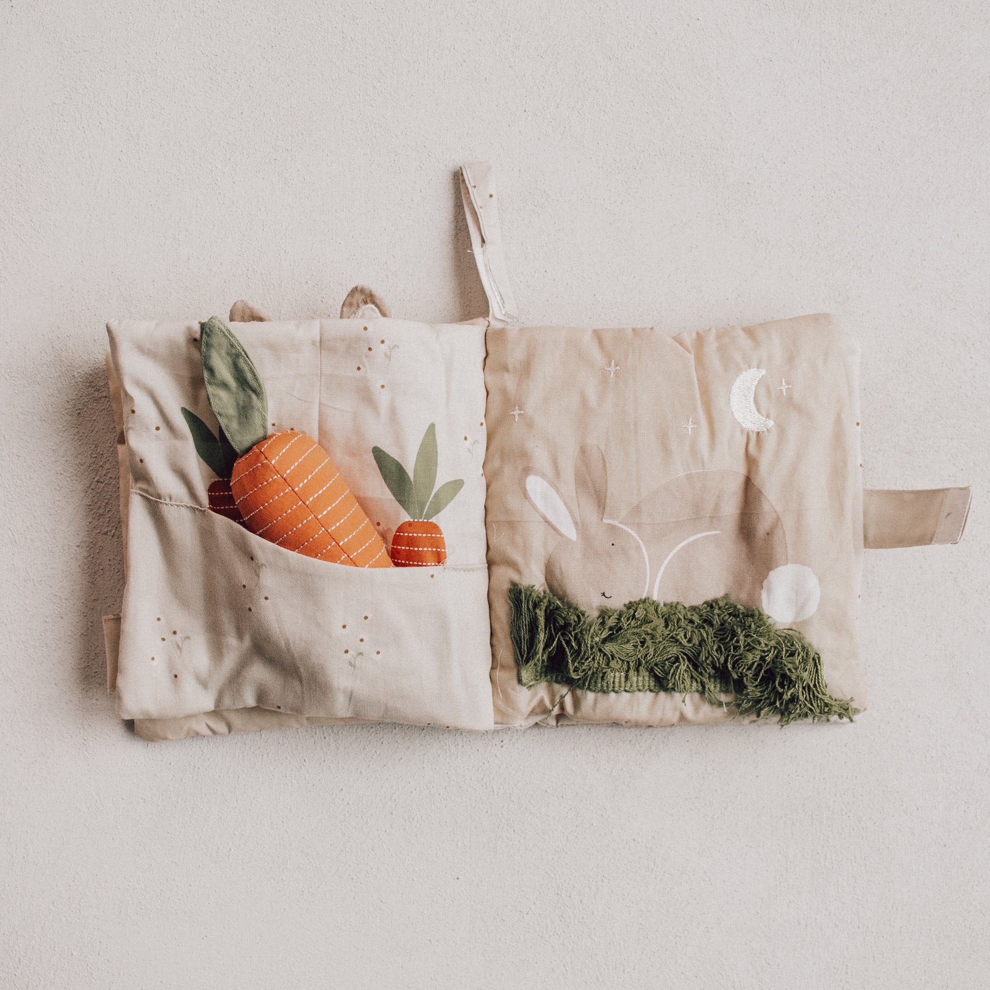 Keep little hands and minds busy with this beautifully crafted fabric activity book. Featuring sweet bunny characters and gentle interactive elements, it’s designed to spark curiosity, encourage sensory play, and support early development. Soft, lightweight, and easy to carry, it’s the perfect on-the-go toy or thoughtful gift.