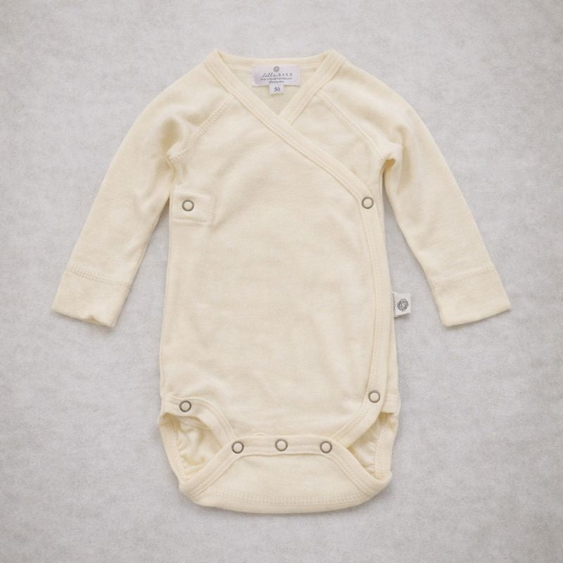Made from wonderfully soft, high-quality merino wool, this wrap romper is designed for easy dressing without needing to be pulled over your child’s head. Extra reinforcement adds durability for longer wear, while sustainable and fair production ensures a thoughtfully made, long-lasting piece.